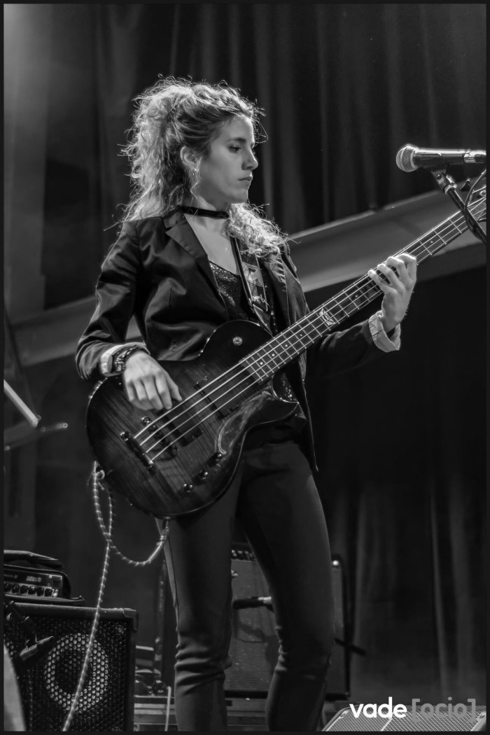 Sandra Ruibal (Valladolid): Mi tocaya es la más veterana de la banda, ha estado casi des del principio con el contrabajo y el bajo y hemos pasado mucho tiempo juntas más allá de los conciertos y ensayos. Es una punki con mucho estilo, una científica y musicaza a partes iguales, la alegría y el toque de locura que hace que esto siga siendo un juego.